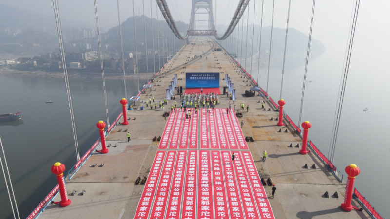 3月15日,隨著最后一節(jié)段鋼桁梁S8的成功吊裝,全國最大跨度公軌兩用懸索橋——重慶郭家沱長江大橋成功合龍,該橋采用巨力索具預應力錨固系統(tǒng)。郭家沱長江大橋項目是重慶市級重點工程,也是重慶快速路“六縱線”跨長江節(jié)點工程。該項目線路北起江北郭家沱,南接南岸峽口鎮(zhèn),全長6.2公里,由花紅灣立交、郭家沱長江大橋、峽口立交三部分組成。