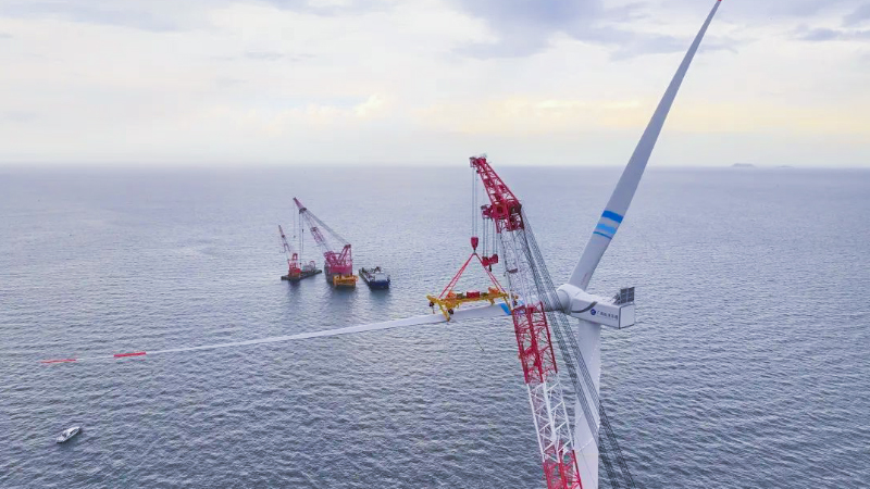 近日,廣西首個海上風電項目——廣西投資集團防城港海上風電示范項目A場址工程首臺風電機組完成吊裝,為2023年底首批機組并網(wǎng)發(fā)電打下基礎(chǔ)。巨力索具所研發(fā)50噸折疊式海上單葉片吊具順利完成首臺風機的葉片安裝。
