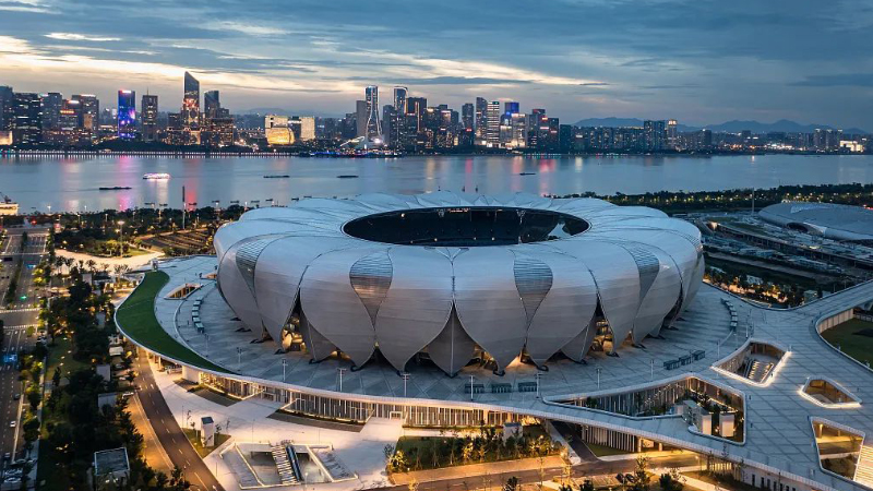 比賽場館是舉辦一場精彩賽事的前提,巨力索具參與建設(shè)的杭州奧體中心體育場(以下,簡稱“杭州奧體中心)是杭州亞運會開幕場館及重要比賽場館之一。主體的運動場館外形似蓮花,造型動感飄逸,由28片大花瓣和27片小花瓣組成。項目采用巨力索具高強度鋼拉桿和高釩索,增強花瓣面外穩(wěn)定。該造型取意于杭州絲綢紋理與紡織體系,建筑體態(tài)源于錢塘江水的動態(tài),擁有簡潔的花瓣單元,猶如一朵美麗的蓮花綻放于錢塘江畔。