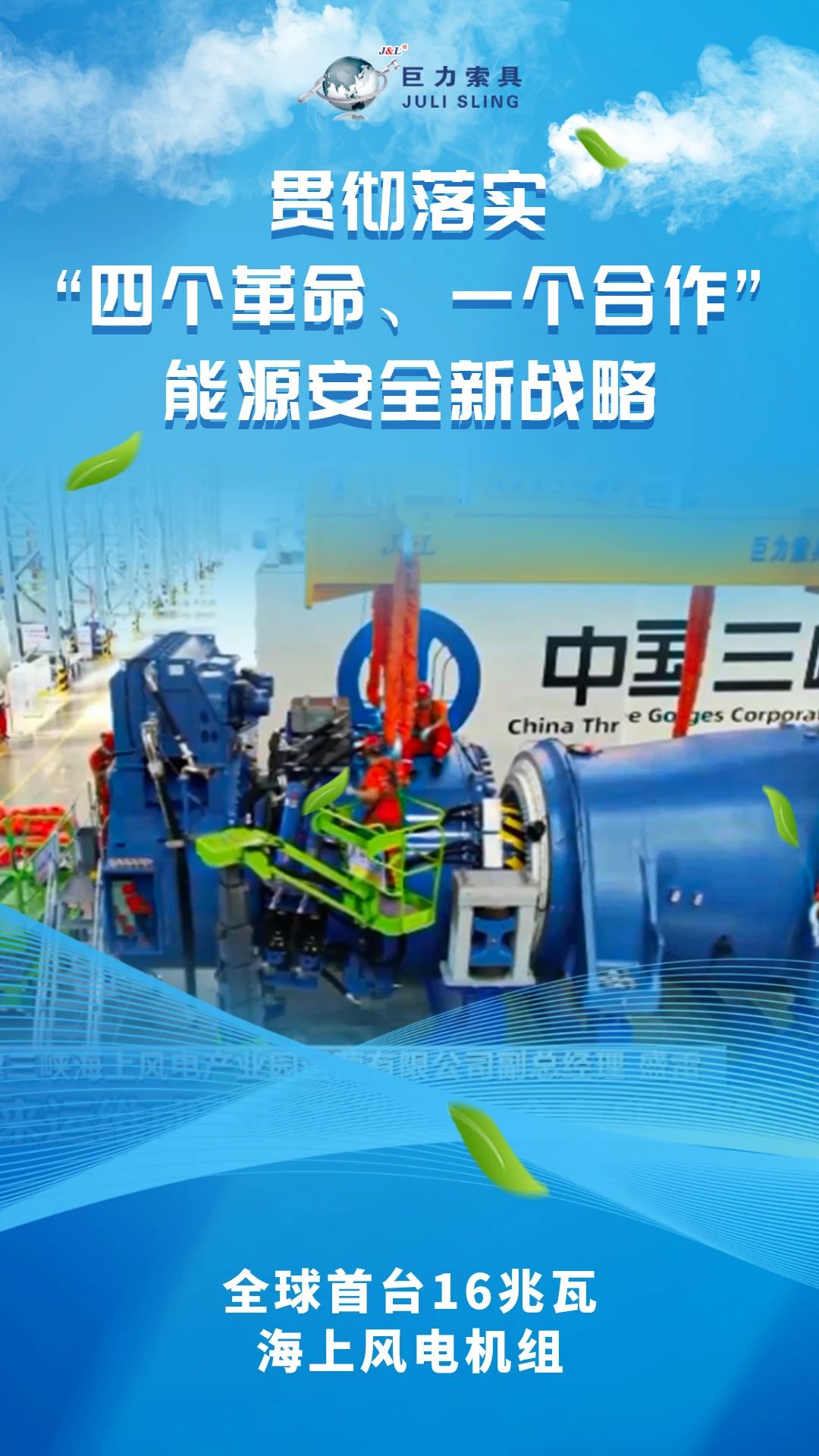 本期,巨力索具官微發(fā)布能源安全新戰(zhàn)略十周年系列報(bào)道之一,看能源安全新戰(zhàn)略背景下,巨力索具繪就的風(fēng)電領(lǐng)域節(jié)能降碳和諧畫卷,感受奮進(jìn)路上結(jié)出的累累碩果。