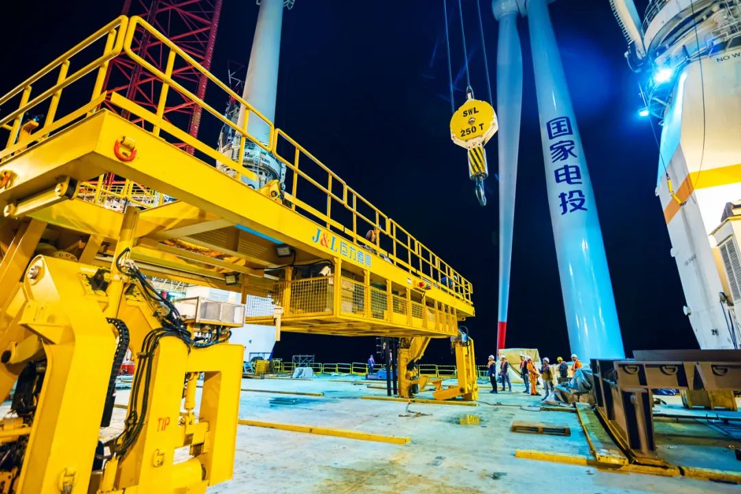 2021年8月19日,華能山東半島南4號(hào)海上風(fēng)電項(xiàng)目順利完成首臺(tái)風(fēng)機(jī)“整體”吊裝,風(fēng)機(jī)整體最大重量為650噸,該吊裝設(shè)備包括運(yùn)輸?shù)鬃⒕旨?、平衡梁、電氣系統(tǒng)、液壓系統(tǒng)、緩沖系統(tǒng)等部件構(gòu)成,是巨力索具在北方沿海地區(qū)海上風(fēng)電首個(gè)風(fēng)機(jī)整體吊裝項(xiàng)目。開創(chuàng)了國內(nèi)海上風(fēng)電實(shí)施5.0兆瓦以上單樁基礎(chǔ)風(fēng)機(jī)整體吊裝先河。