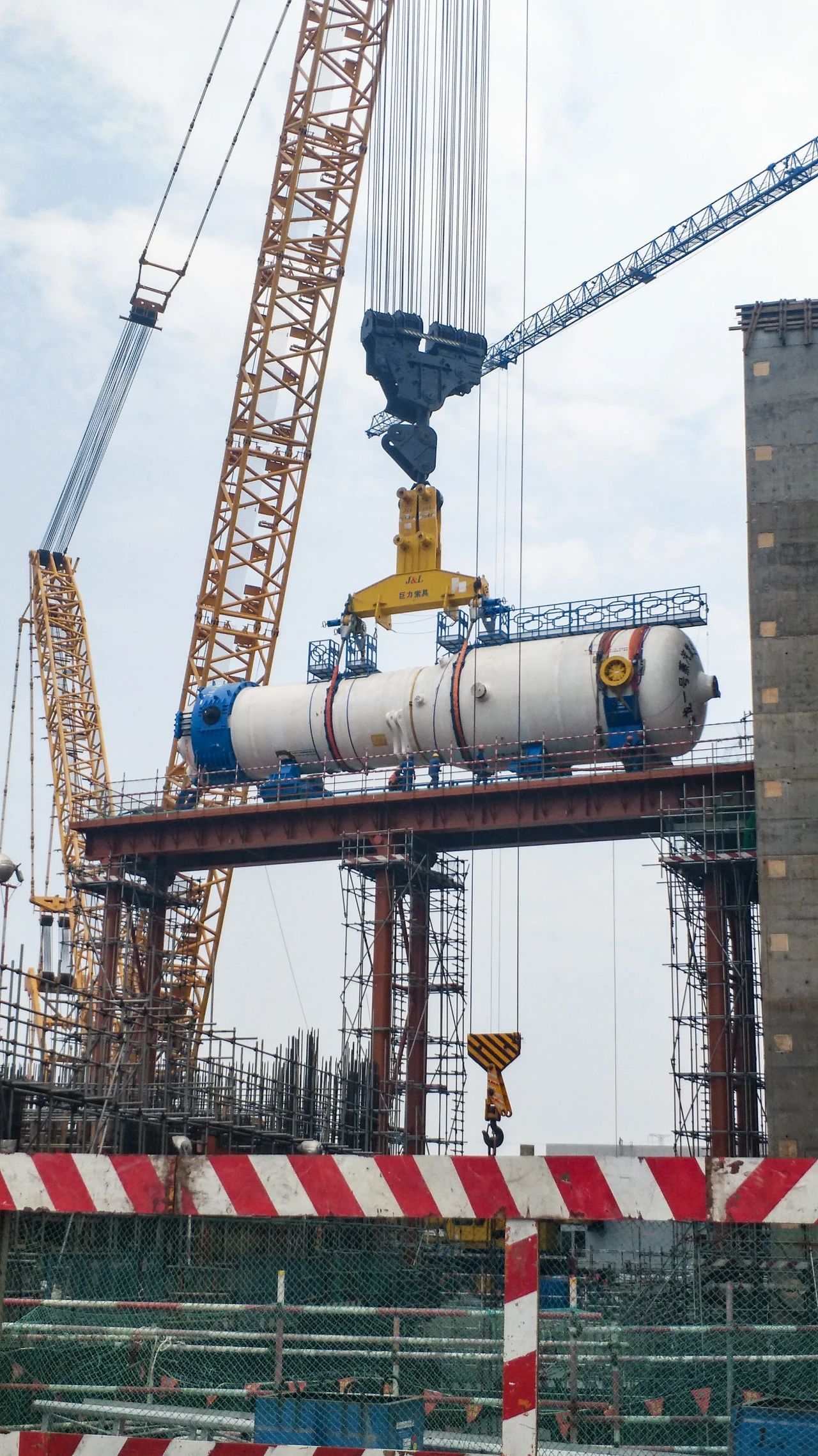 2016年5月,我國自主研發(fā)的世界首座具有第四代核電特征的高溫氣冷堆核電站首臺金屬堆內(nèi)構(gòu)件堆芯殼順利吊裝就位。巨力索具為該工程量身定做的大型十字吊梁(額載400噸),配套吊裝帶、鋼絲繩索具以及高強度鍛造索具連接件產(chǎn)品,先進的吊裝方案和高質(zhì)量的吊索具產(chǎn)品,為重要構(gòu)件吊裝成功提供了堅實的保障。