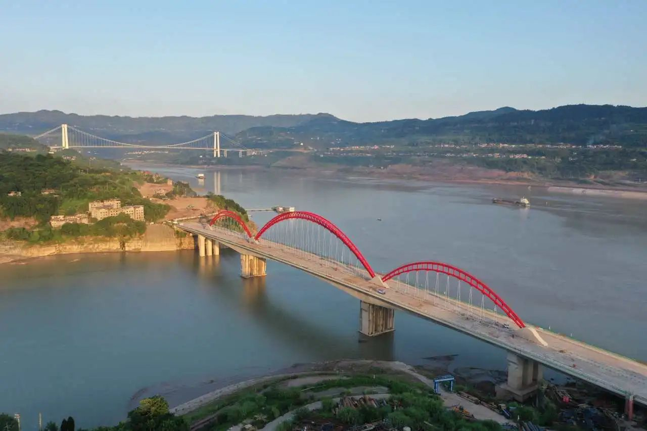 青山綠水之間,一座大橋騰空而起,不僅方便了當(dāng)?shù)厝嗣窠煌ǔ鲂?,促進(jìn)經(jīng)濟(jì)發(fā)展,而且在川渝大地,長江之側(cè)形成了一道亮麗的風(fēng)景線,兼具美學(xué)和實(shí)用價(jià)值。