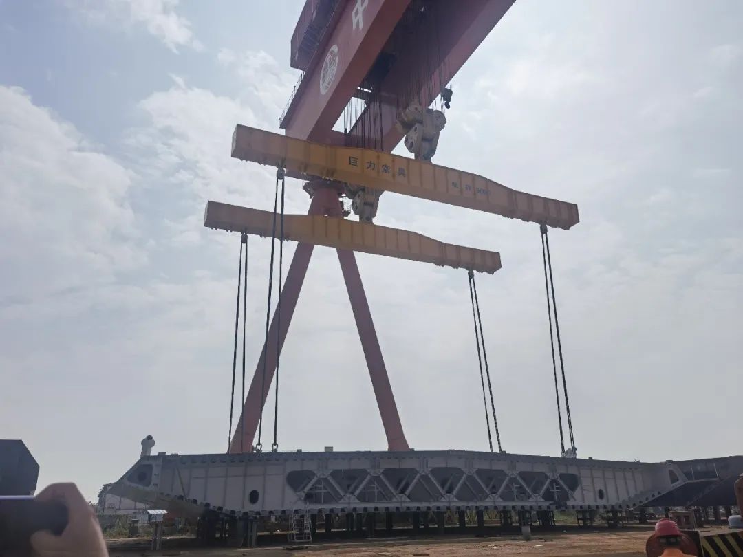11月19、20日,長133米,寬20米,高4.7米,重1700噸的大型鋼箱梁段運至指定位置,巨力索具研發(fā)制造的鋼箱梁吊具全程保障該項目吊裝順利實施,標(biāo)志著深中通道G05標(biāo)段泄洪區(qū)鋼箱梁大節(jié)段XG9L出海平臺在中鐵山橋南方裝備試運行成功。此次成功試運行為深中通道鋼箱梁大節(jié)段順利啟運奠定了堅實基礎(chǔ)。