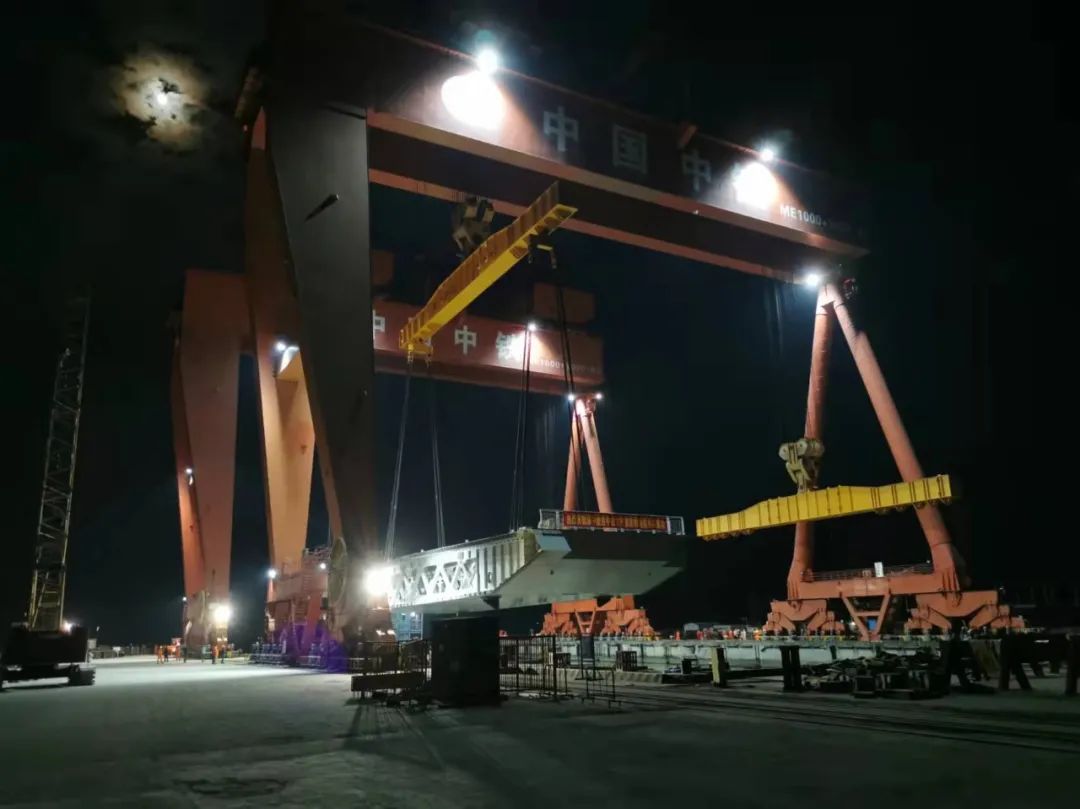 千噸級吊裝 成果再上新重量1700噸為全橋最重鋼箱梁