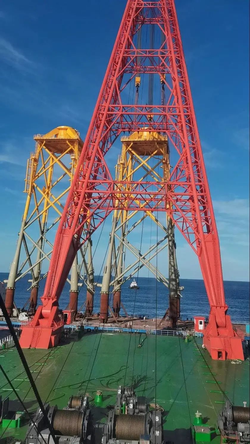 近日,惠洲海域亞洲第一吊高“秦航工2300”自航起重船初試鋒芒,成功吊裝惠州海域風(fēng)場(chǎng)今年首根鋼結(jié)構(gòu)導(dǎo)管架。