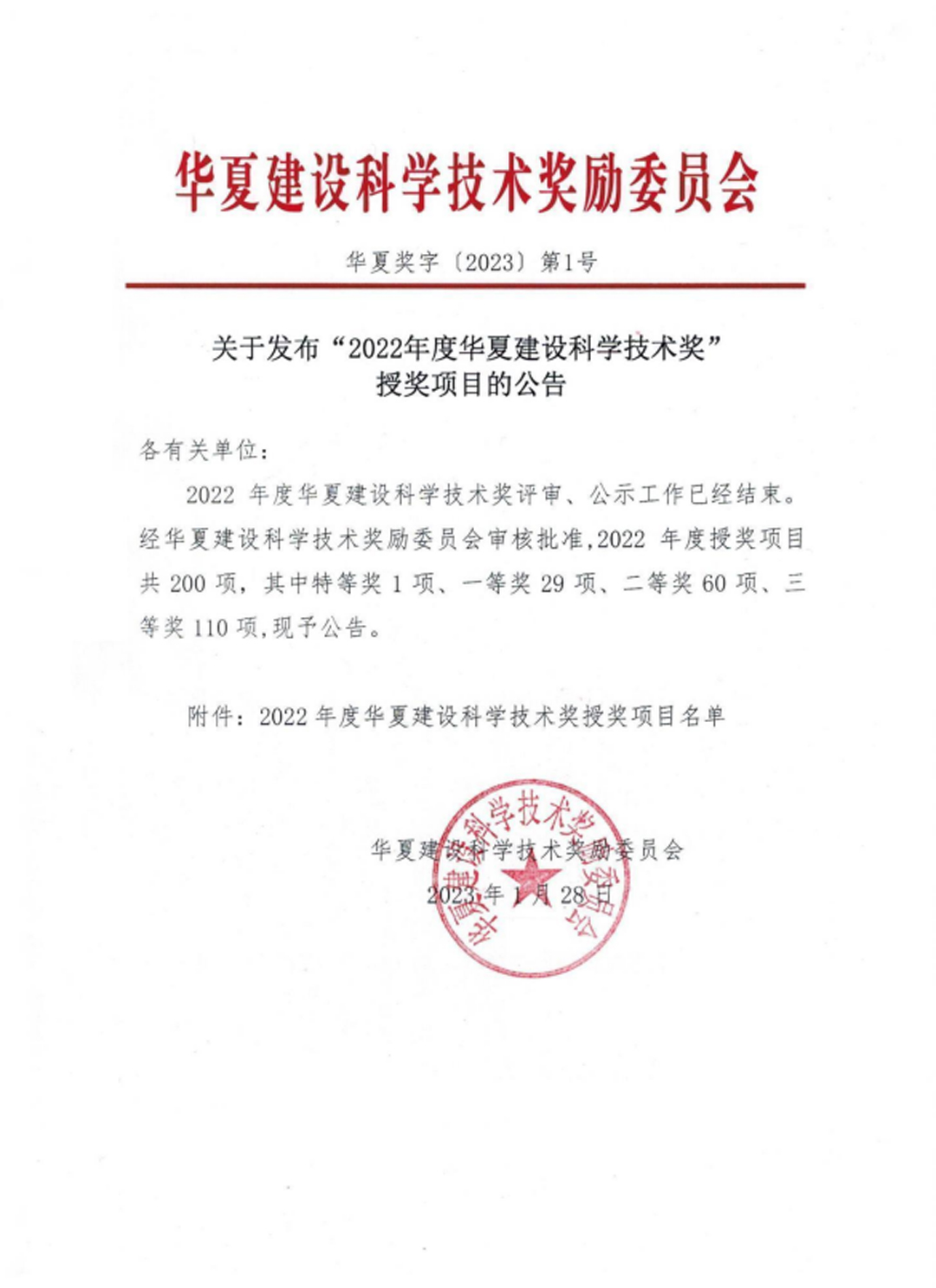 △ “2022年度華夏建設(shè)科學(xué)技術(shù)獎(jiǎng)”授獎(jiǎng)項(xiàng)目公告