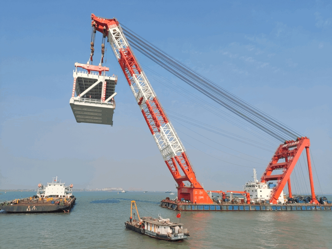 面對(duì)施工中高聳支架體系安裝、超高空吊裝、長(zhǎng)距離同步拖拉滑移等眾多施工技術(shù)難題,加之該地域海工環(huán)境復(fù)雜,對(duì)吊具平衡性、安全性、精準(zhǔn)度提出很大挑戰(zhàn),巨力索具項(xiàng)目團(tuán)隊(duì)在吊具方案設(shè)計(jì)上,多次與項(xiàng)目部超前籌劃、比選論證專項(xiàng)吊裝施工方案,從吊具結(jié)構(gòu)、材料性能、全橋鋼箱梁兼容性等方面進(jìn)行優(yōu)化升級(jí),確保吊裝工作順利進(jìn)行。
