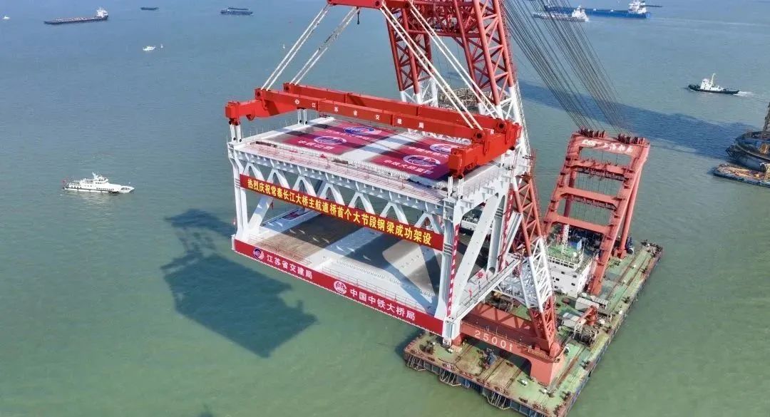 常泰長(zhǎng)江大橋是世界上首座集高速公路、城際鐵路、一級(jí)公路為一體的過(guò)江通道,其主航道為主跨1176米的斜拉橋,跨度位居世界首位,具備“四個(gè)國(guó)際首創(chuàng)”和 “六個(gè)橋梁之最”。建成后對(duì)促進(jìn)長(zhǎng)三角區(qū)域更高質(zhì)量一體化發(fā)展,加快揚(yáng)子江城市群建設(shè)具有重要意義。