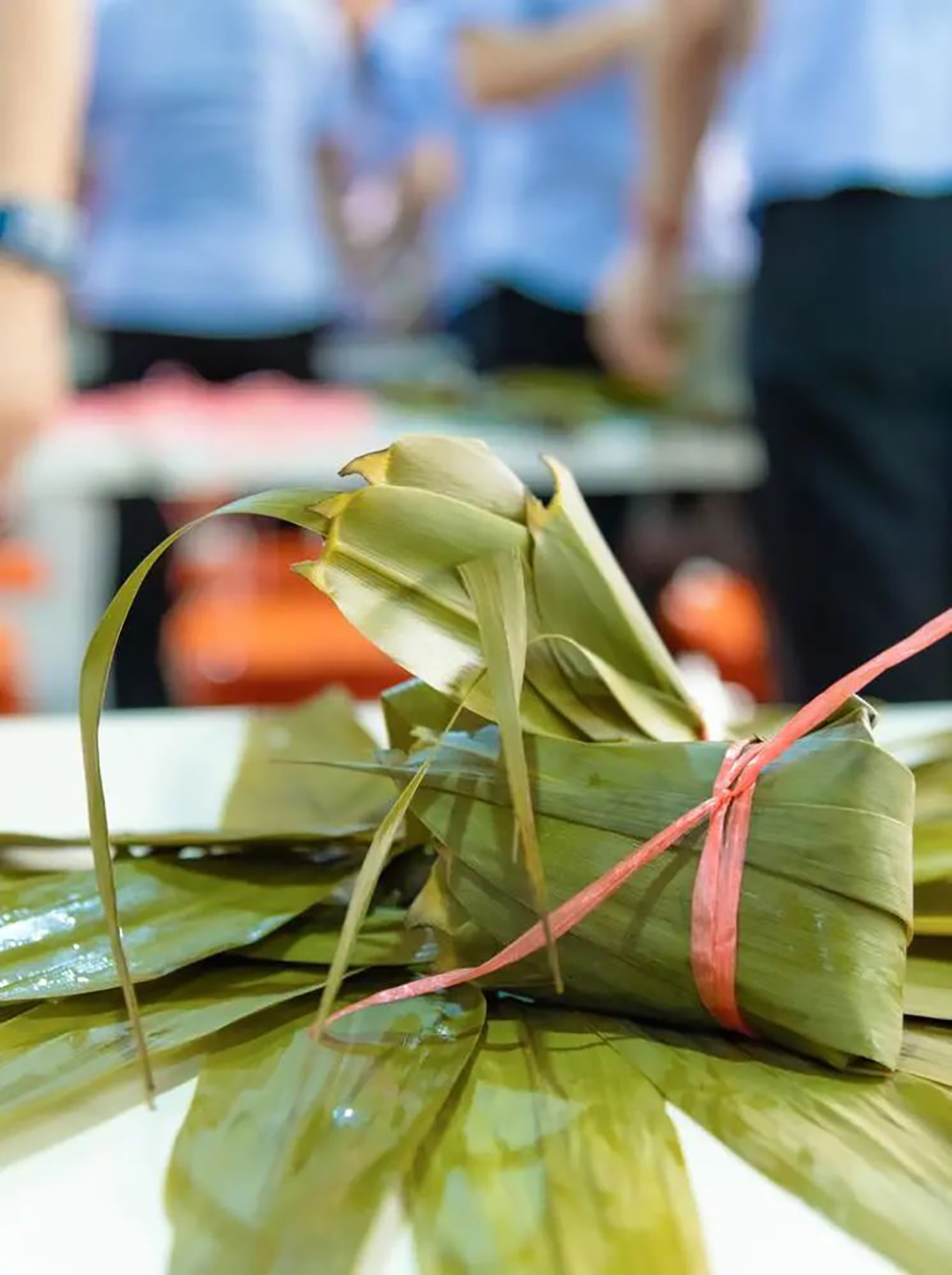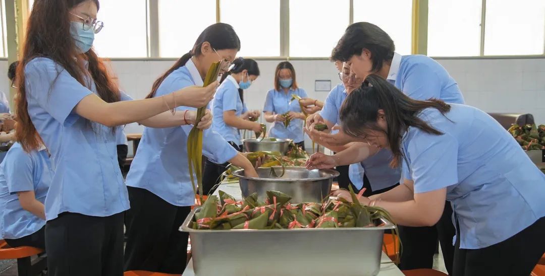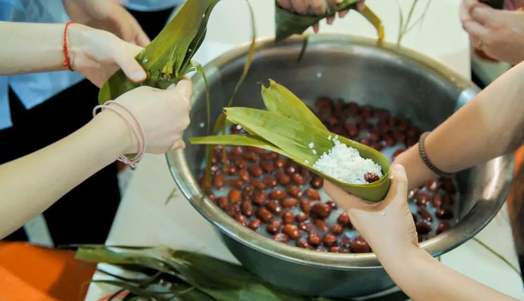 大家邊包粽子邊交流經(jīng)驗(yàn),一雙雙靈巧的手把自己對生活的熱愛全都包進(jìn)了粽子里。不一會兒,一個個胖鼓鼓的粽子便堆成了小山,勞動的成果滿滿地呈現(xiàn)在大家的面前。片片粽葉散發(fā)著清香,粒粒糯米寄托著溫情,濃濃的節(jié)日氣氛拉近了大家的心。